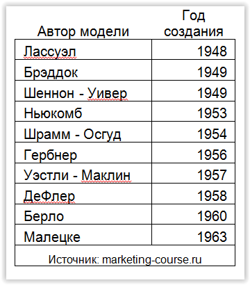 Модели коммуникации: автор и год создания