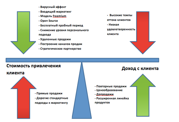 Бизнес, может быть прибыльным, только если прибыль от покупок клиента за все время покупок в компании будет выше стоимости его привлечения. Т.е. LTV > CAC